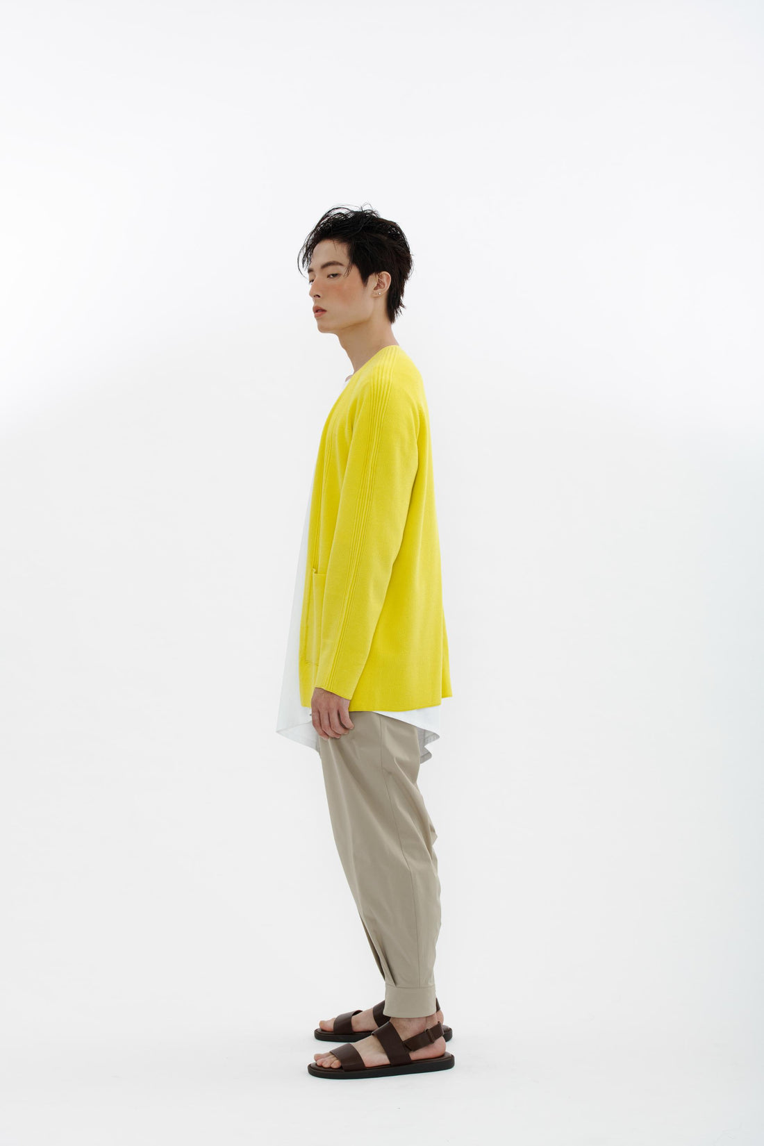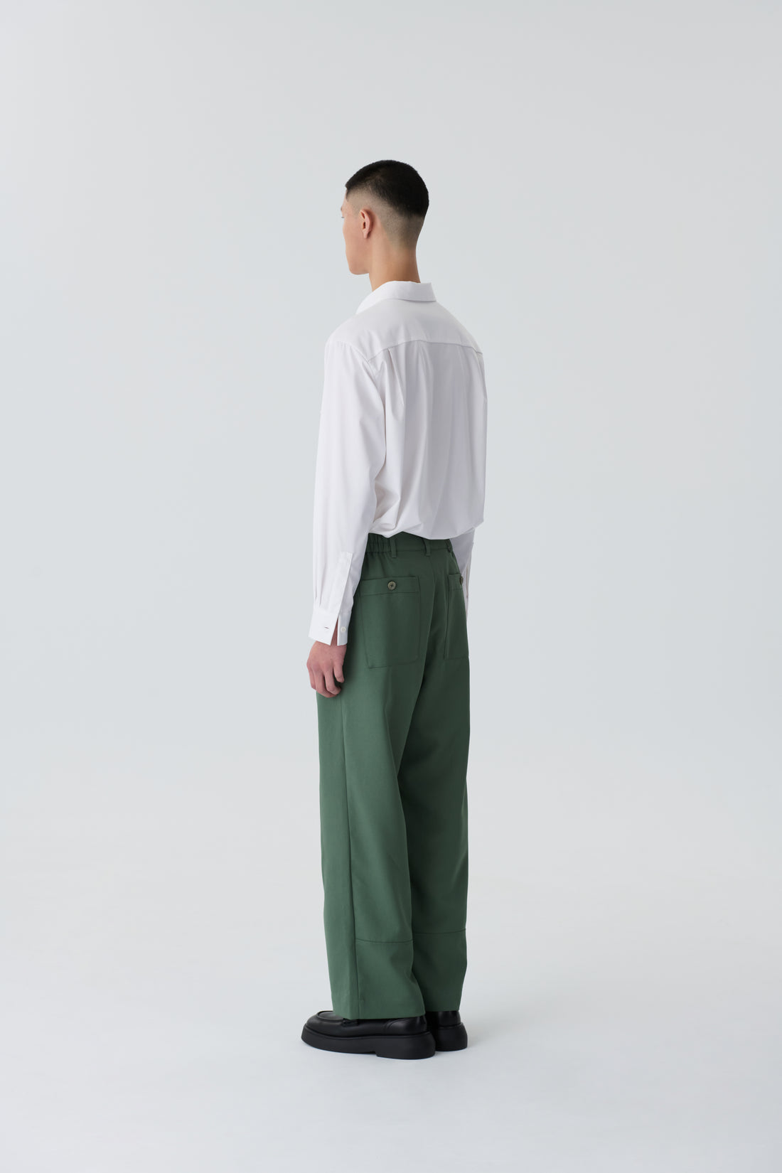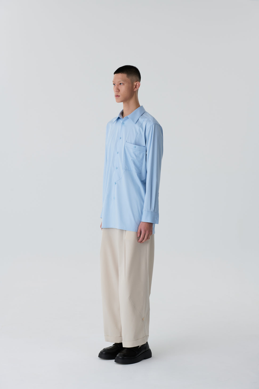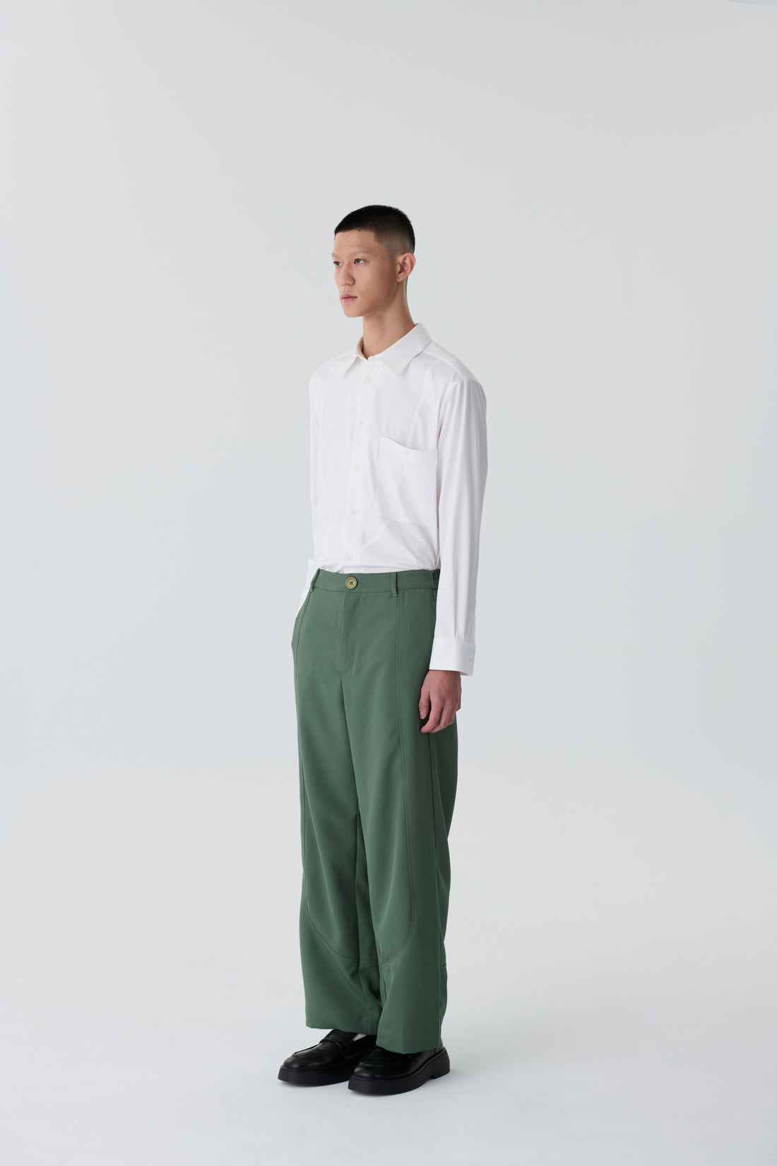 弧形剪接直筒褲