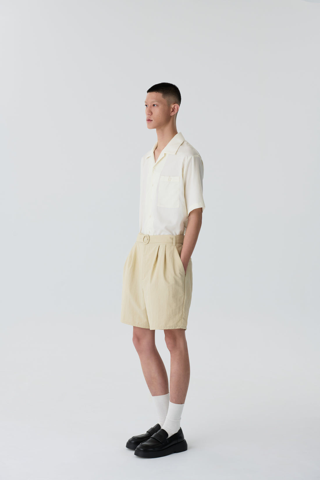 腰帶打褶短褲